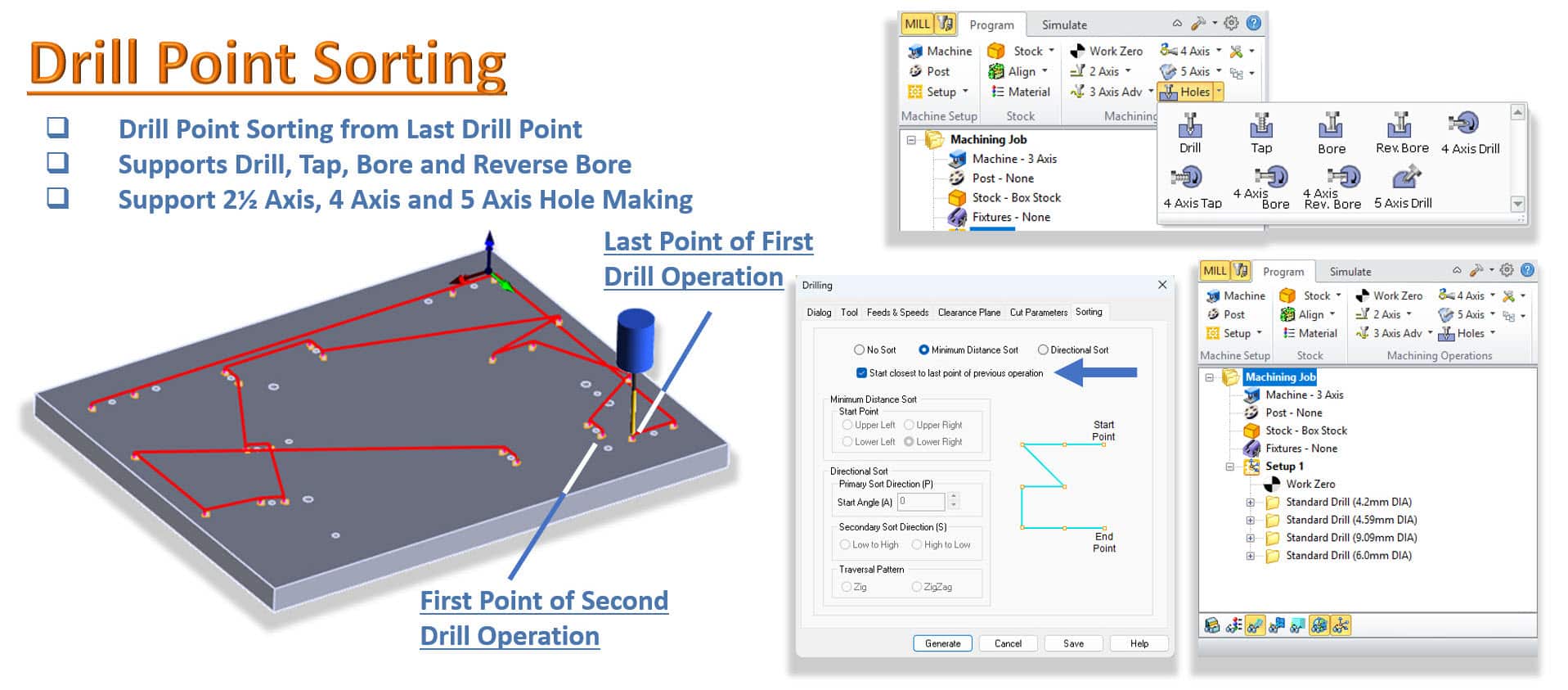 MecSoft CAM 2026:ssa on uutta porausreikien lajittelua. Tämä on merkittävä tuottavuusominaisuus työstettäessä useita reikiä sisältäviä osia, kuten muottilevyjä, joissa on ulostyöntötapit.