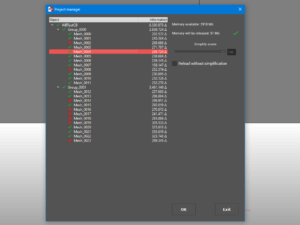Olemme lisänneet ominaisuuden, jolla yksinkertaistetaan työtä suurten projektien kanssa. Nyt, jos RAM-muistia on vähän, voit purkaa joitakin projektin tietoja, joita ei tällä hetkellä tarvita, ja palauta se projektille myöhemmin tarvittaessa. Sen avulla voit myös aktivoida kaikkien projektin skannausten yksinkertaistamisen RAM-muistin käytön vähentämiseksi.