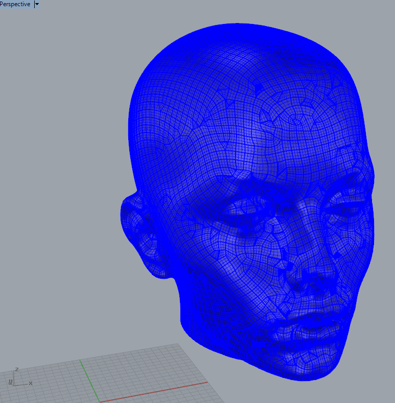 Pieni välihyppäys sovelluksesta toiseen. Reduce toiminnon jälkeen Rhinossa käytin Resurf sovelluksen Automatic surface generation from mesh työkalua, jolla sain mesh pintaisesta 3D-mallista pintamallin. Ilman Rhino3DPRINT:in Reduce toimintoa Resurf sovelluksen työkalujen käyttö olisi kohtuullisen tahmeaa. Nyt homma hoitui oikein mukavasti, tosin kyllä silti mesh-pinnasta pintamalliksi muokkaus vaatii tehoja tietokoneelta.