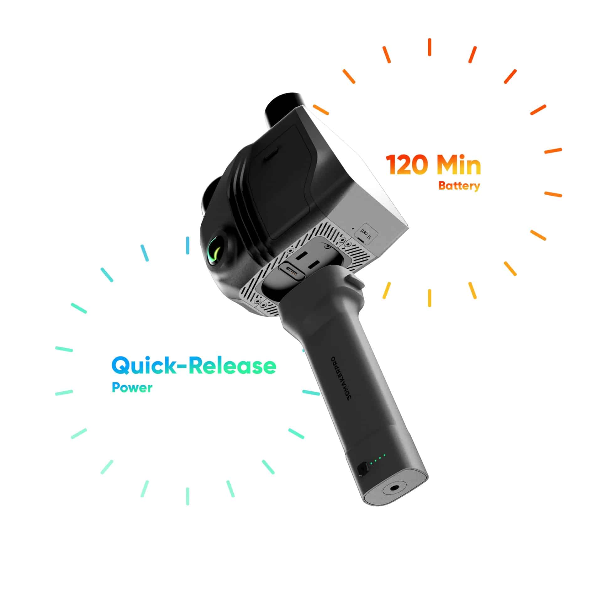 Jokainen akku tukee jopa kahden tunnin skannausta, ja pikavaihtomekanismin ansiosta voit jatkaa projektia keskeytyksettä.