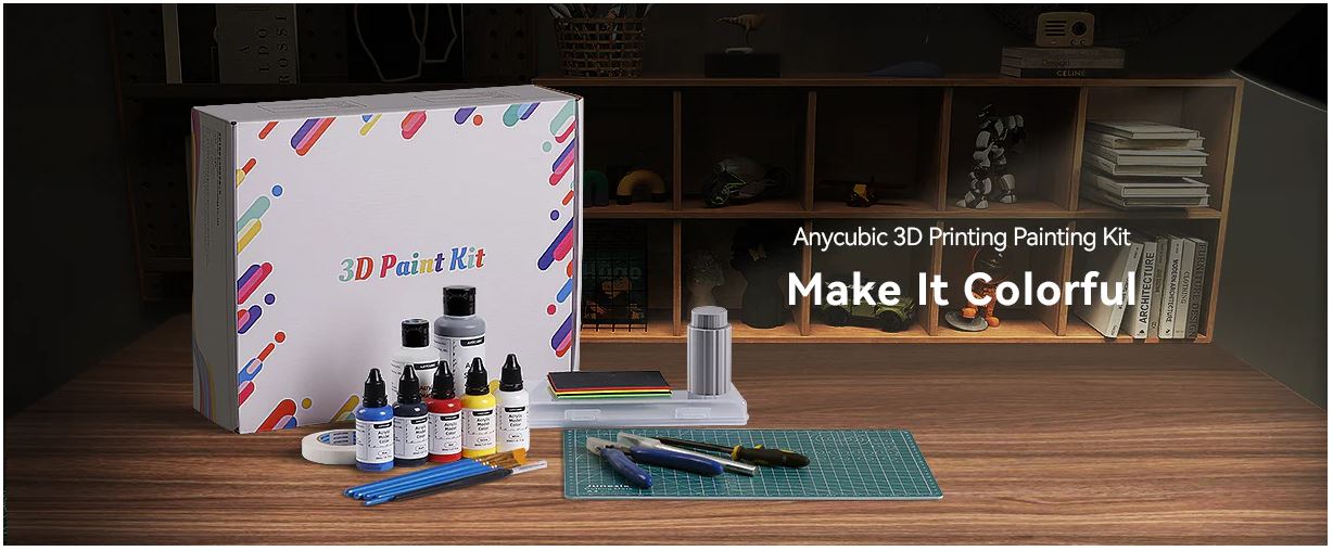 Anycubic 3D-tulostus maalaussarja korostaa tulostuskokemuksia. Mukana tulee kiillotustyökalut, suojavarusteet, maalityökalut ja veipohjaiset akryylimaalit