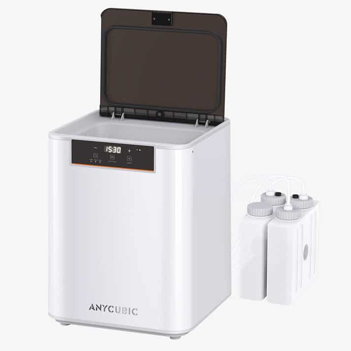 Kammion koko on 305 × 165 × 300 mm – 98,55 % suurempi kuin aiemmissa malleissa – joten tämä laite soveltuu helposti suuriin hartsitulosteisiin. Integroitu suihkutus- ja upotustoiminto takaavat kattavan puhdistuksen, ja kaksoiskäyttötila lisää monipuolisuutta.