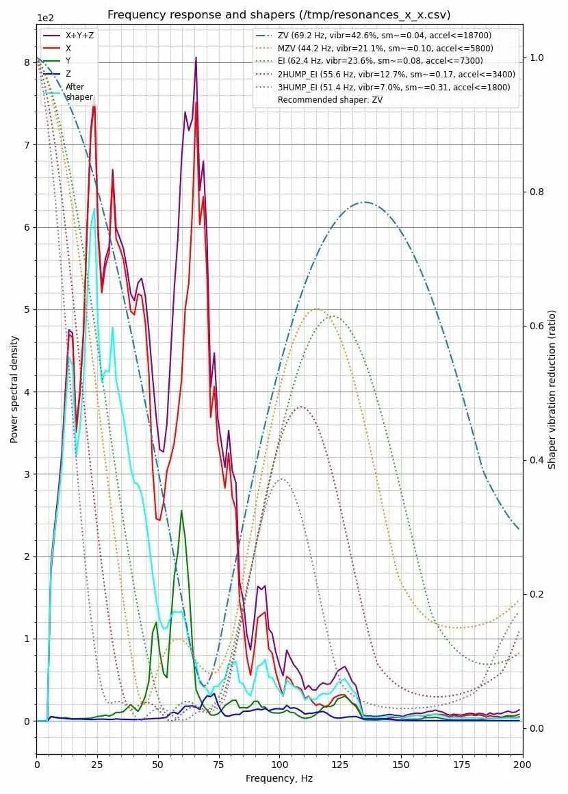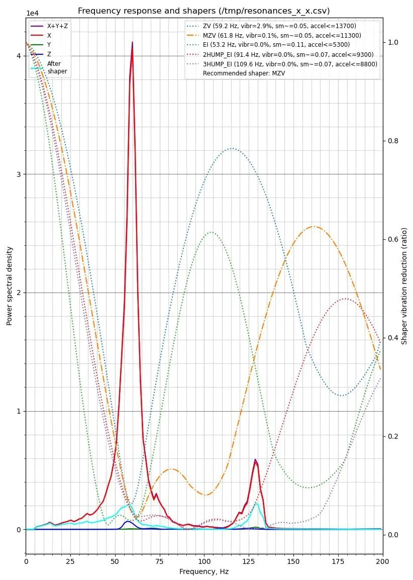 Vähemmän aggressiivisella shaper mzv:llä saamme maksimikiihtyvyydeksi nopean 11300mm²/s ja vain 0,05mm tasoitussäteen. Se on MASSIIVINEN 527 %:n lisäys X-akselilla kiihtyvyyksiin ja valtava 84 %:n lasku tasoitussäteessä.