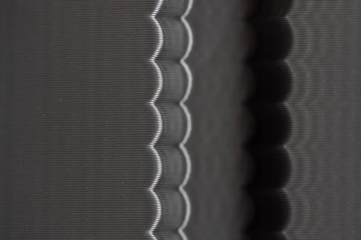 Alempana kuvat keskittyvät enemmän tärinän vaimentamiseen ja terävien kulmien suorituskykyyn, jossa näet edellisessä kuvassa, kuinka terävät kulmat ovat hieman pyöristettyjä, ja viimeisestä kulmasta tulee paljon rengastusta. Jälkikuvassa soiminen on kadonnut lähes kokonaan ja terävät kulmat säilyneet tarkoitetulla tavalla.