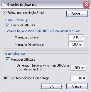 OptiCutin varastoa voidaan päivittää jokaisen optimoinnin jälkeen. Minimimittoja suuremmat putoamiset katsotaan uudelleenkäytettäviksi, ja ne lisätään varastoon poistokertoimella.