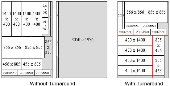 OptiCutin käänntötoiminto mahdollistaa pääleikkaussuunnan muuttamisen (vaaka- tai pystysuunnassa) saman leikkauskartan sisällä.