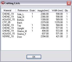 Leikkausluettelot viedään OptiCut-muodossa sekä «Teksti»-muodossa, joka on yhteensopiva useimpien laskentataulukoiden ja leikkauksen optimointiohjelmiston kanssa.
