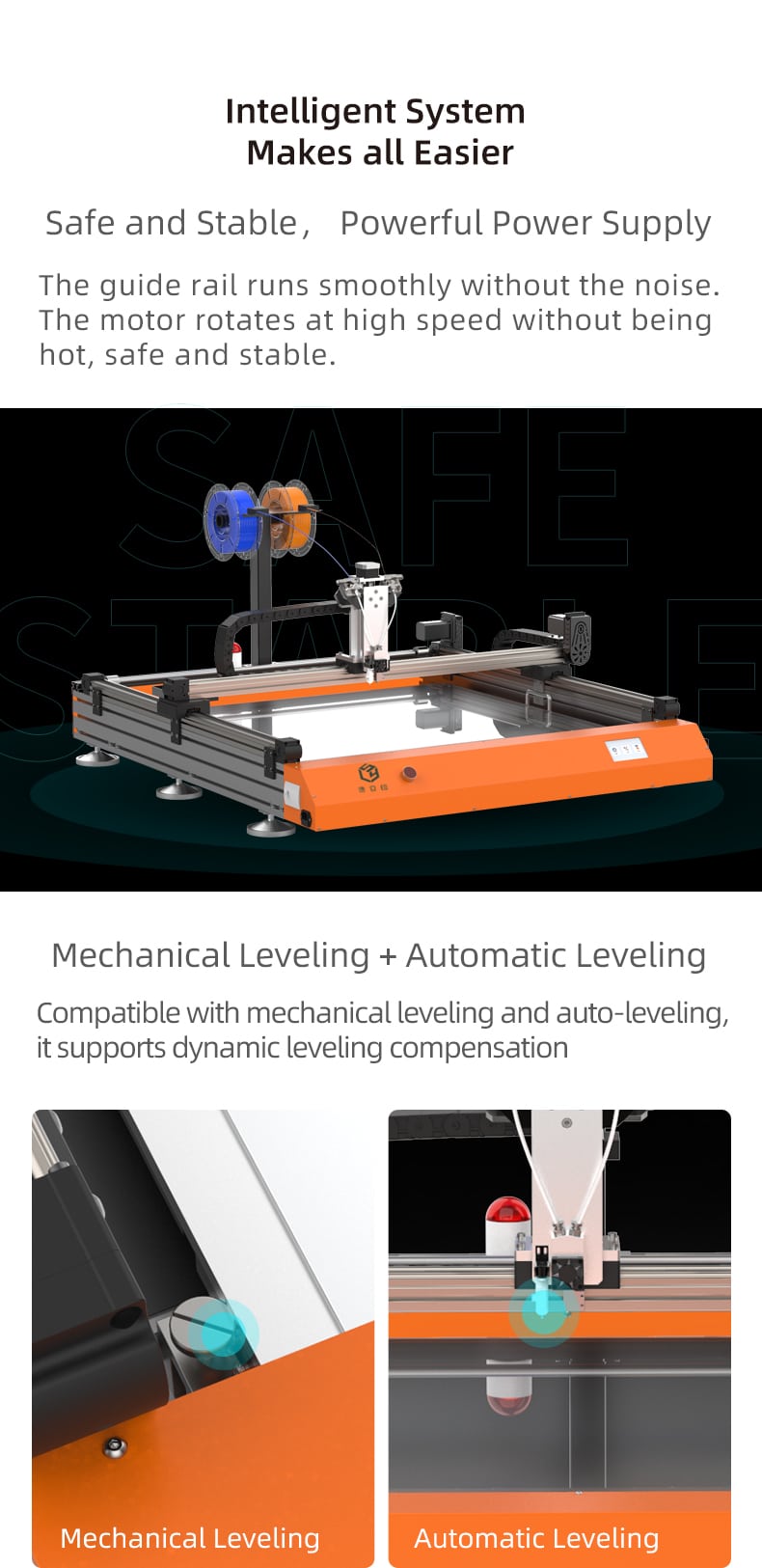 Creality K8 3D -tulostin mahdollistaa mekaanisen ja automaattisen (anturin avulla) vaaitusasetuksen. Se tukee dynaamista vaaituskompensaatiota.