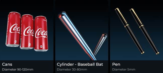 7 vaihdetta ovat valinnaisia erikokoisille sylinterimäisille esineille.