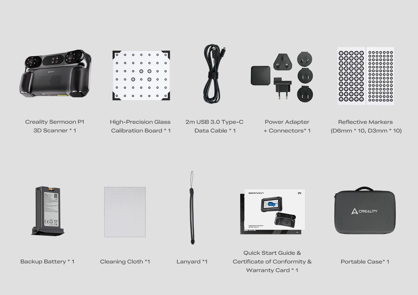 Creality Sermoon P1 3D-skanneri on kannettava ja monipuolinen skannausratkaisu, joka toimii ilman tietokonetta. Sisäänrakennetun prosessoinnin, kosketusnäytön ja akkuvirran ansiosta se mahdollistaa aidosti itsenäisen 3D-skannauksen missä tahansa. Sinisen laserin ja strukturoidun valotekniikan yhdistelmällä se tallentaa tarkkaa ja yksityiskohtaista 3D-dataa monenlaisista kohteista.