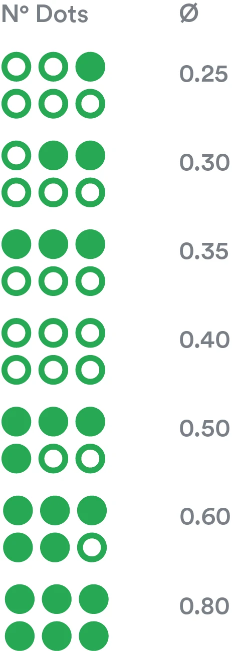 E3D suuttimet ovat tunnistettavissa kuusikulmaisen pään tasoissa olevista merkinnöistä, katso tunnistusta alla olevasta taulukosta.