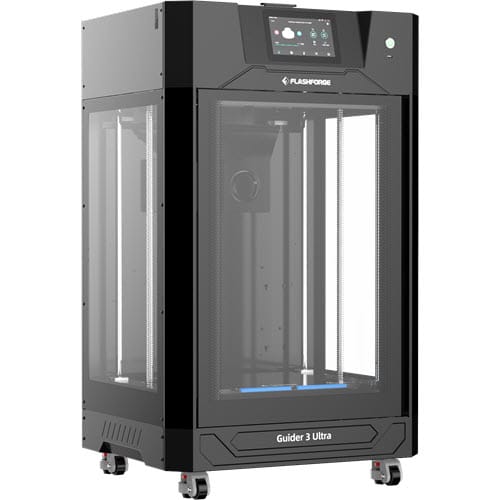 Flashforge Guider 3 Ultra on saatavana mustana. Sen tyylikäs ulkonäkö ja ergonominen muotoilu tekevät siitä ihanteellisen mihin tahansa studioon, pieniin yrityksiin tai oppilaitoksiin. Tulostimen mitat ovat 635 x 550 x 1070mm.