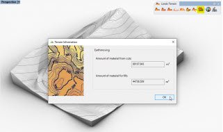 Tämän ominaisuuden avulla voit mitata maaperän määrän sekä täytteissä että kaivannoissa ja rantapenkereissä yksinkertaisesti valitsemalla maaston.