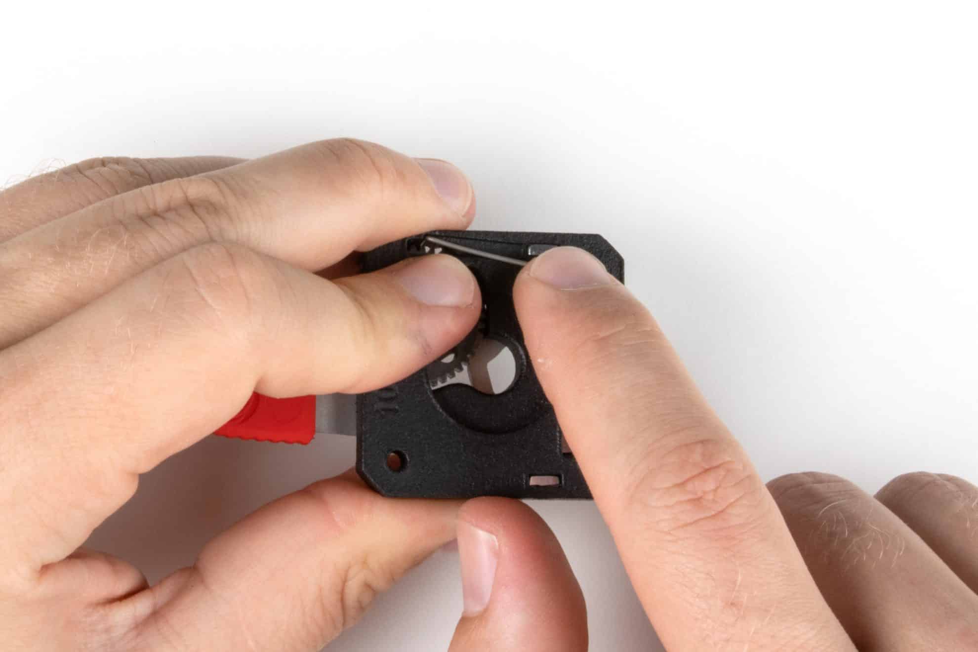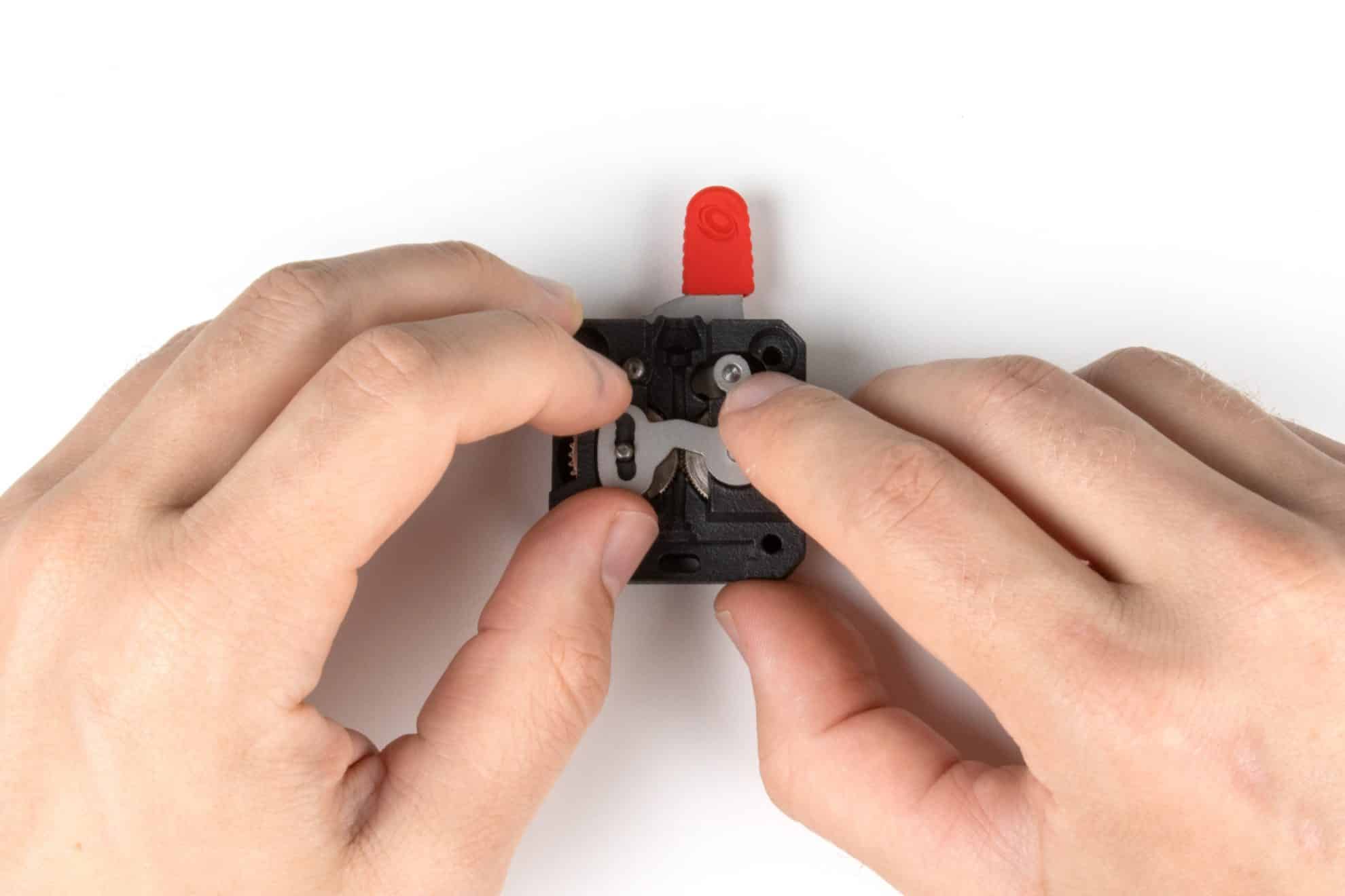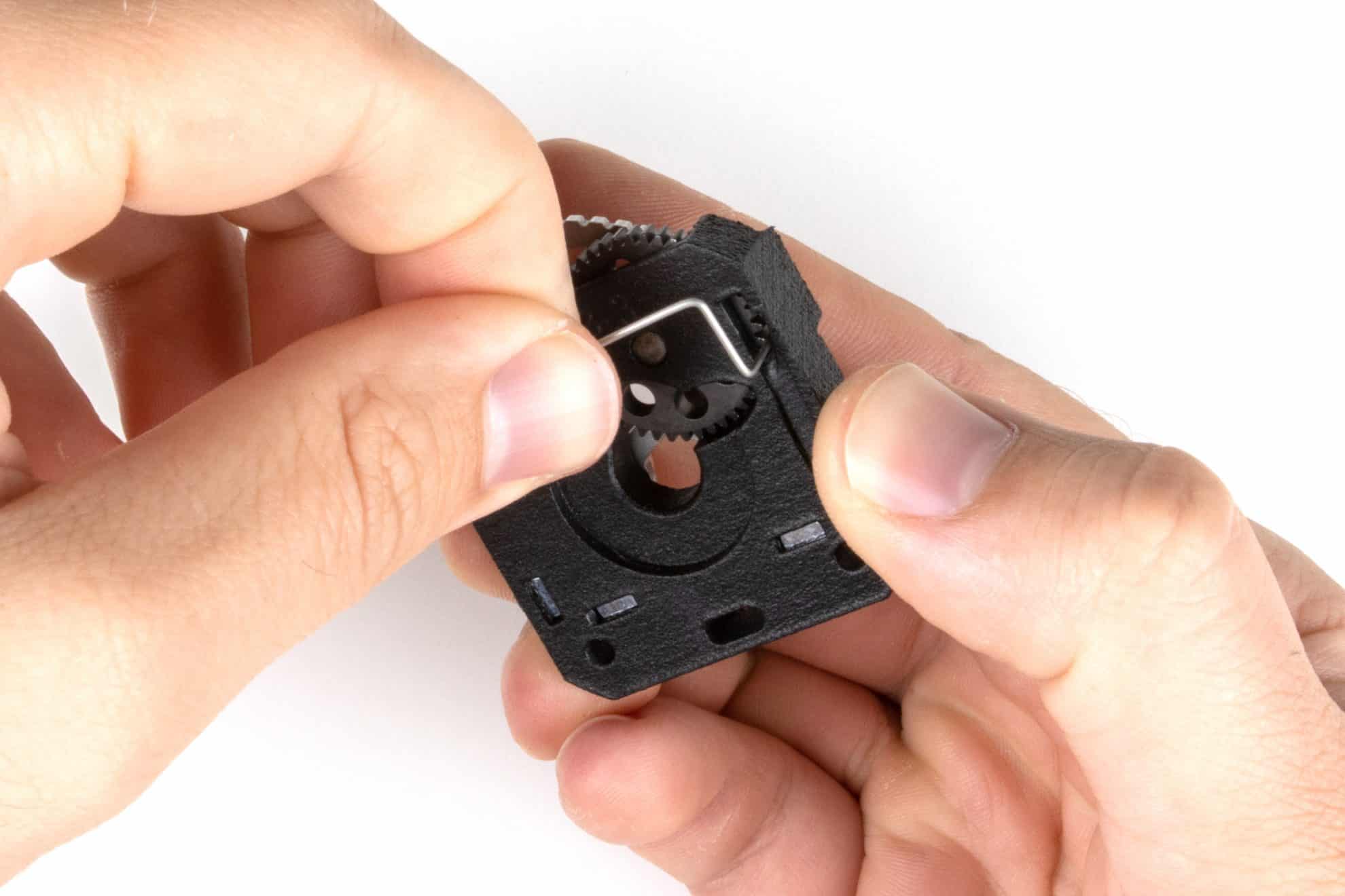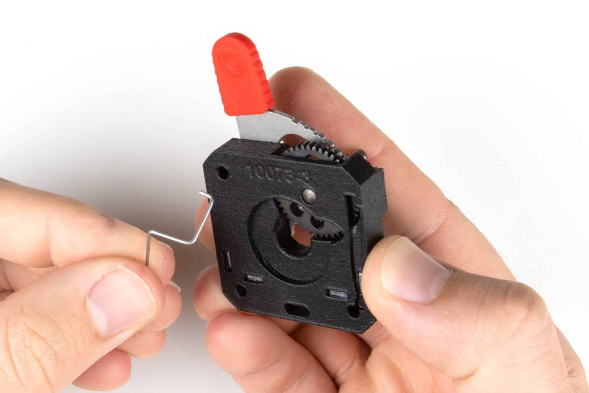 Askel3. Asenna esijännitysvivun jousi (tee se hitaasti, sillä tässä kohtaa se on vaikeampaa).