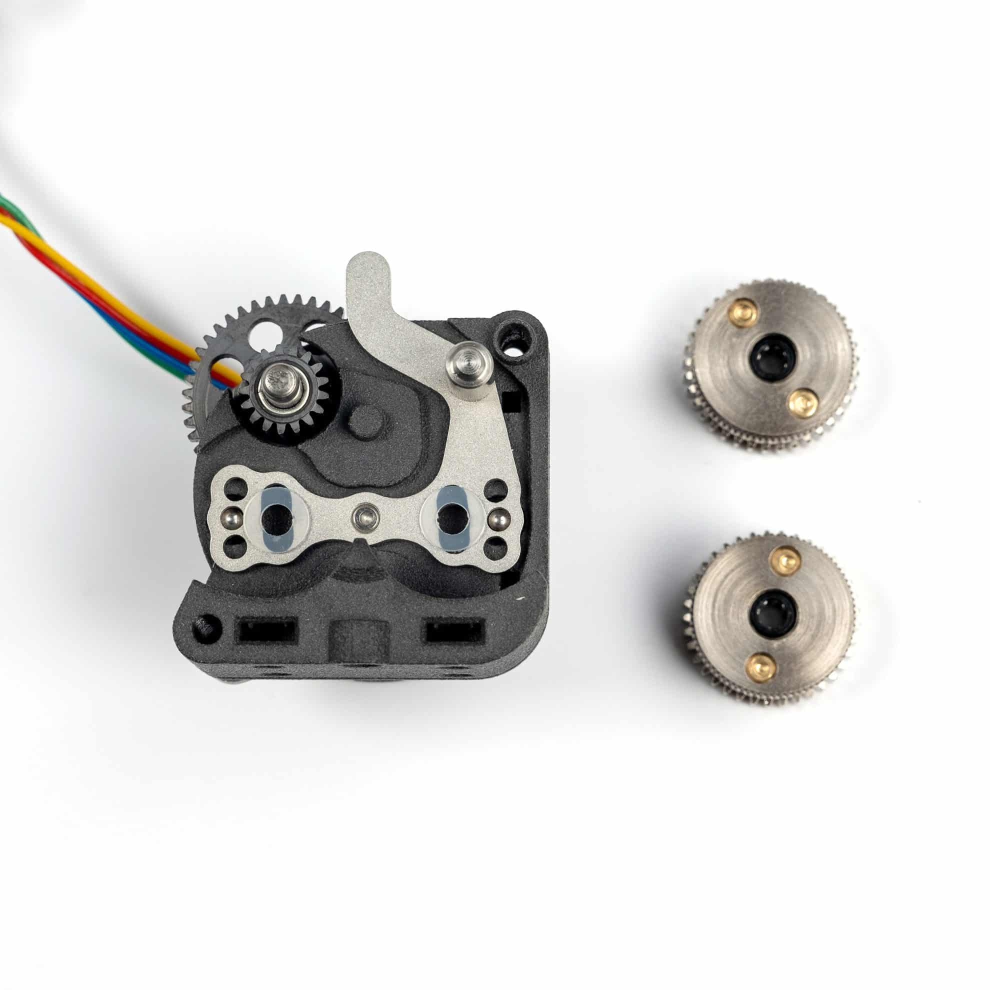 Sarja joka on valmistettu kovetetusta teräksestä korvaamaan muovinen ajo- ja päätuplarattaat Bondtechin Large Gears eXtruderissa.