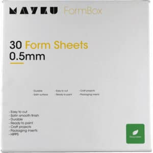 Jokainen pakkaus sisältää 30 arkkia ja on suunniteltu käytettäväksi Mayku FormBoxin kanssa.