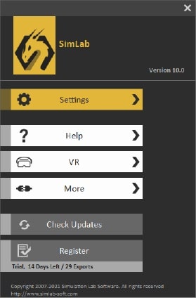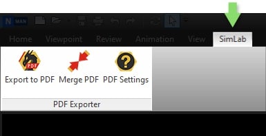Siirry SimLab-välilehdelle ja etsi 3D PDF -exporter välilehti ja napsauta sitten Asetukset (settings).