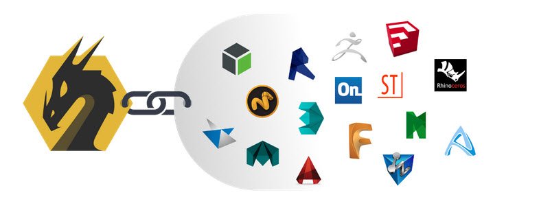 SimLab Rhino sovellukset On SimLabin lisäosa Rhinoon jolla voit viedä ja tuoda 3D suunnitelmiasi helpottaaksesi järjestemläriippumatonta työkulkua.