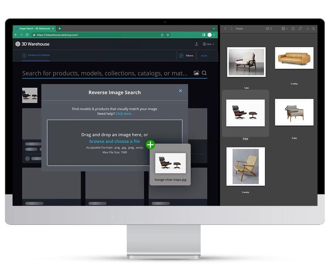 Löydä 3D-malleja ja -materiaaleja 3D Warehousesta nopeasti hyödyntämällä tekstipohjaista hakua tai tekoälypohjaista kuvahakutoimintoamme.