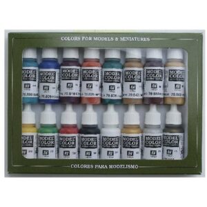 Sarja mallien, hahmojen ja dioraamojen maalaamiseen. Sisältää 16kpl 17 ml (pipetillä) väripullot ja värikartan.