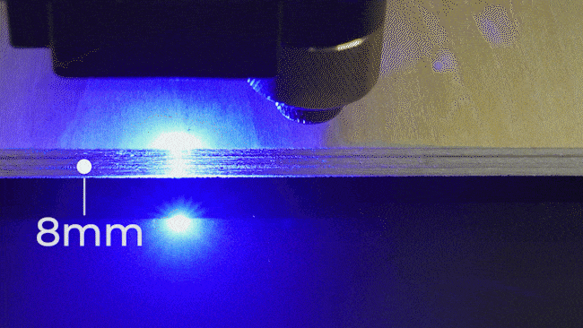 xTool M1 käynnistää automaattisen tarkennuksen, sisältäen visuaalisen tunnistamisen, meteriaalin paksuuden asetukset sekä materiaalintunnistuksen jotta sinun ei tavitse asettaa leikkausparametrejä itse.