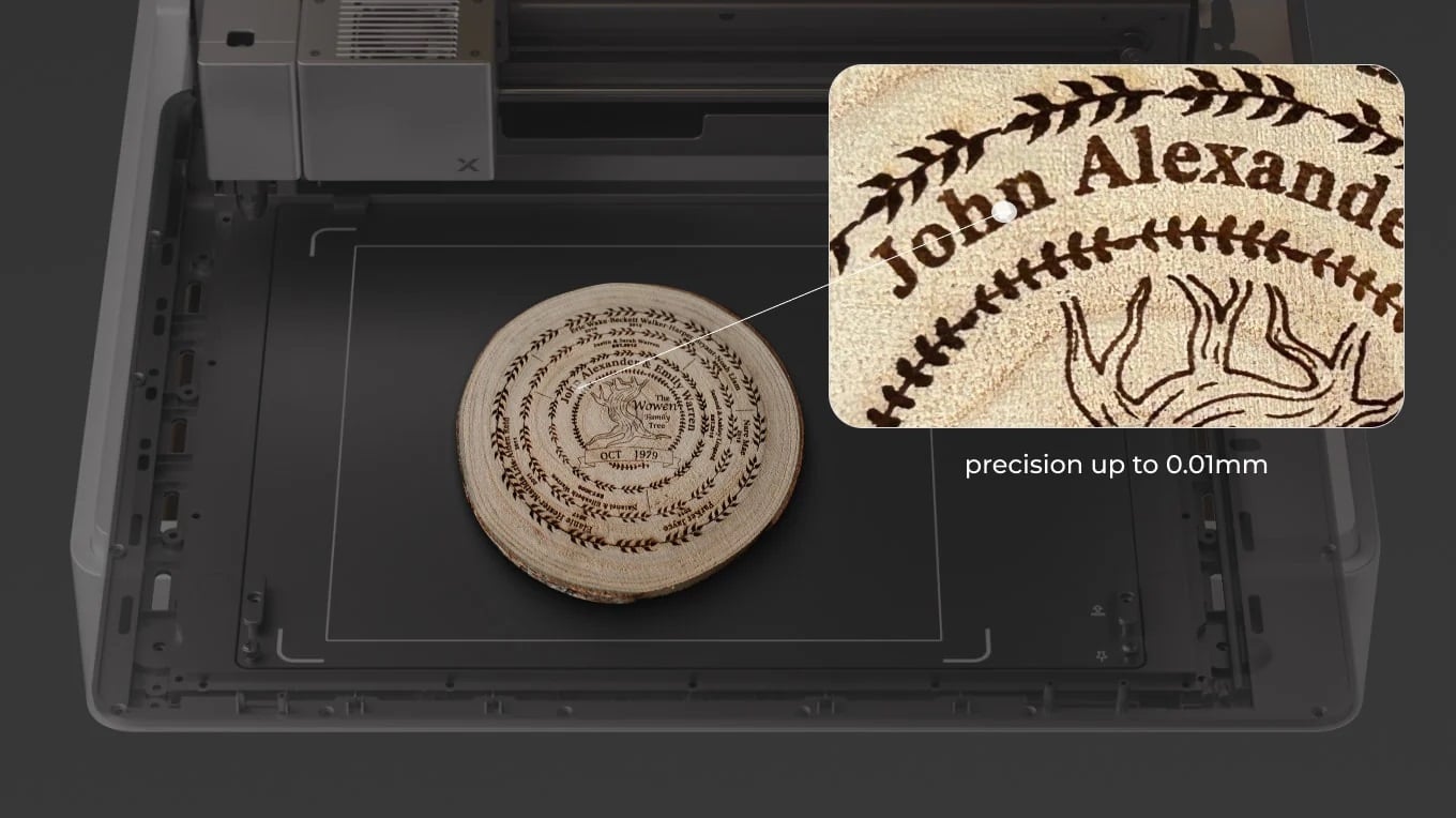 Vaihdettava laserpää jopa 20W asti. Leikkaa tehokkaasti jopa 10mm:n paksuisten materiaalien läpi yhdellä kierroksella.